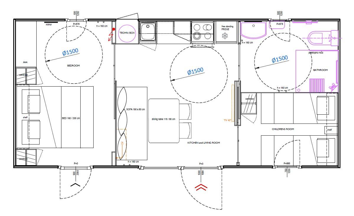 Dimout curtains in all rooms except bathroom and toilet