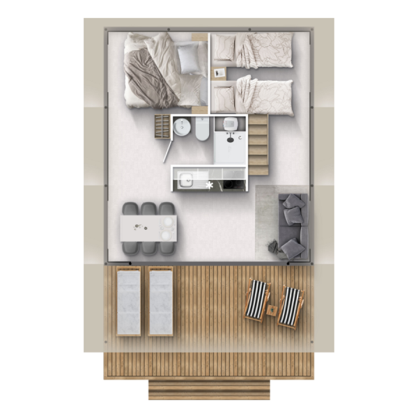 Safari Loft continue l'histoire à succès de la série Safari. L'étage supérieur spacieux ou «Loft» ainsi que le joli balcon se démarquent vraiment. Avec ce modèle, nous proposons au marché un produit unique qui représente pleinement la philosophie d'Adria «Plus proche de la nature». Développé sur la base de l'expérience et conçu avec un sens de la forme et un style de vie méditerranéen.